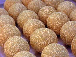 - Gulingkan pada wijen (tekan tekan sedikit), putar-putar dengan 2 telapak tangan sehingga bentuknya bulat dan wijen menempel rata.